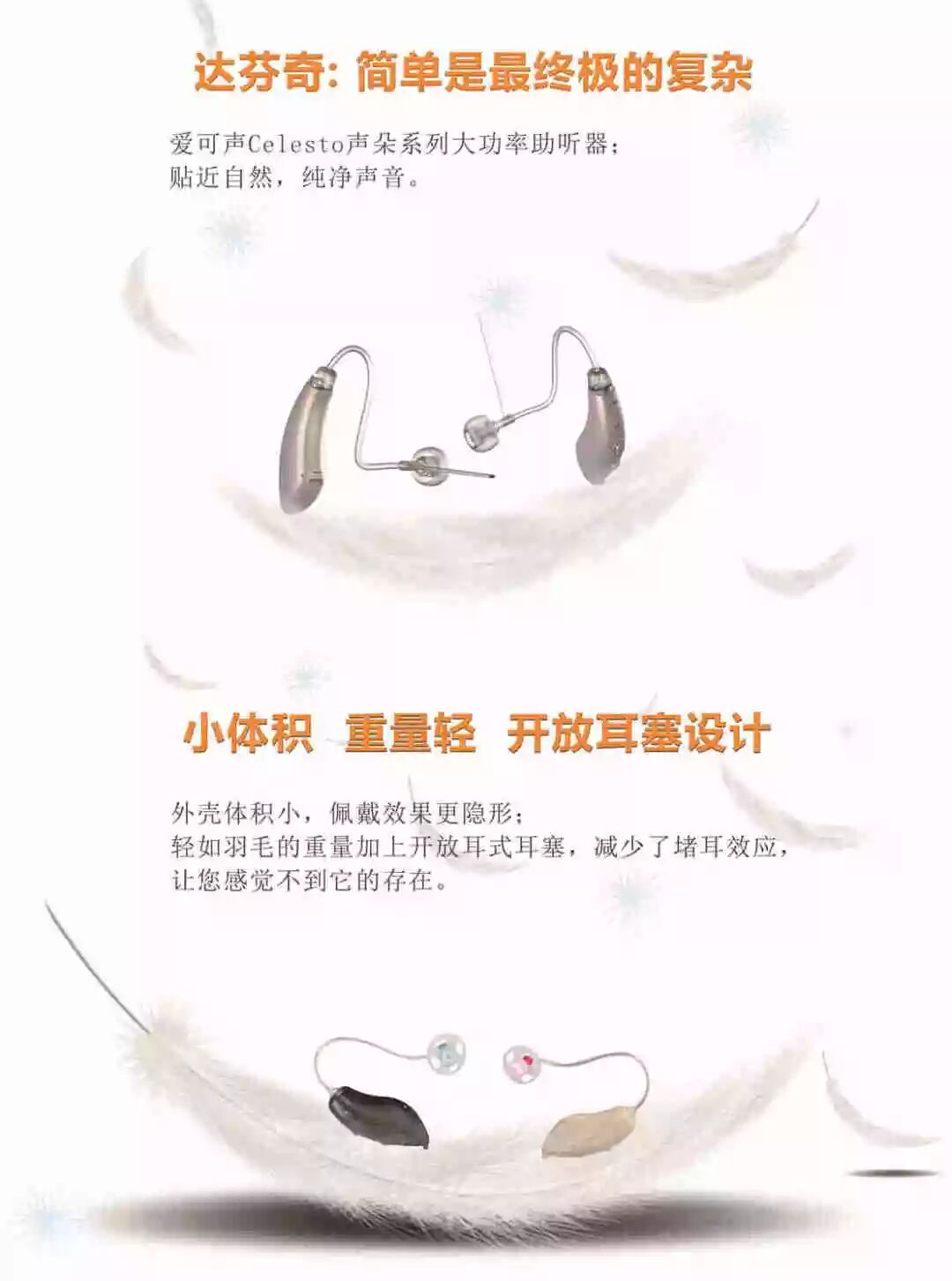 01 企业简介 由中国听力语言康复研究中心主办的2019中国听力语言论坛暨首届沟通障碍康复技术博览会将于2019年9月24至26日在济南国际会展中心举办。 爱可声助听器受邀参加本次会议——D4展位,届时欢迎各位来展交流。 爱可声助听器是全球著名的专业中高端助听器生产商。当前已经遍布全球60多个国家,成为了全世界弱听人士的福音。爱可声通过对创新及卓越品质的不懈追求,致力于为中国乃至世界的弱听人群更好地感受到这个美丽的世界而服务。 02 主推产品 本次论坛的主题为:“沟通、共创、分享”。 届时,通过专业学术交流及高规格沟通障碍康复技术博览会,追踪行业内最新研究热点,探讨听力语言及沟通障碍康复的未来发展方向,为广大专业技术人员搭建学术交流平台。