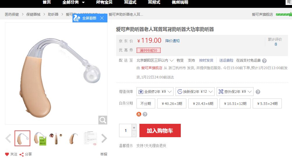 爱可声助听器价格爱可声最便宜的一款助听器价格为119元,从外形上看美观小巧,属于大功率不用平凡的更换电池。